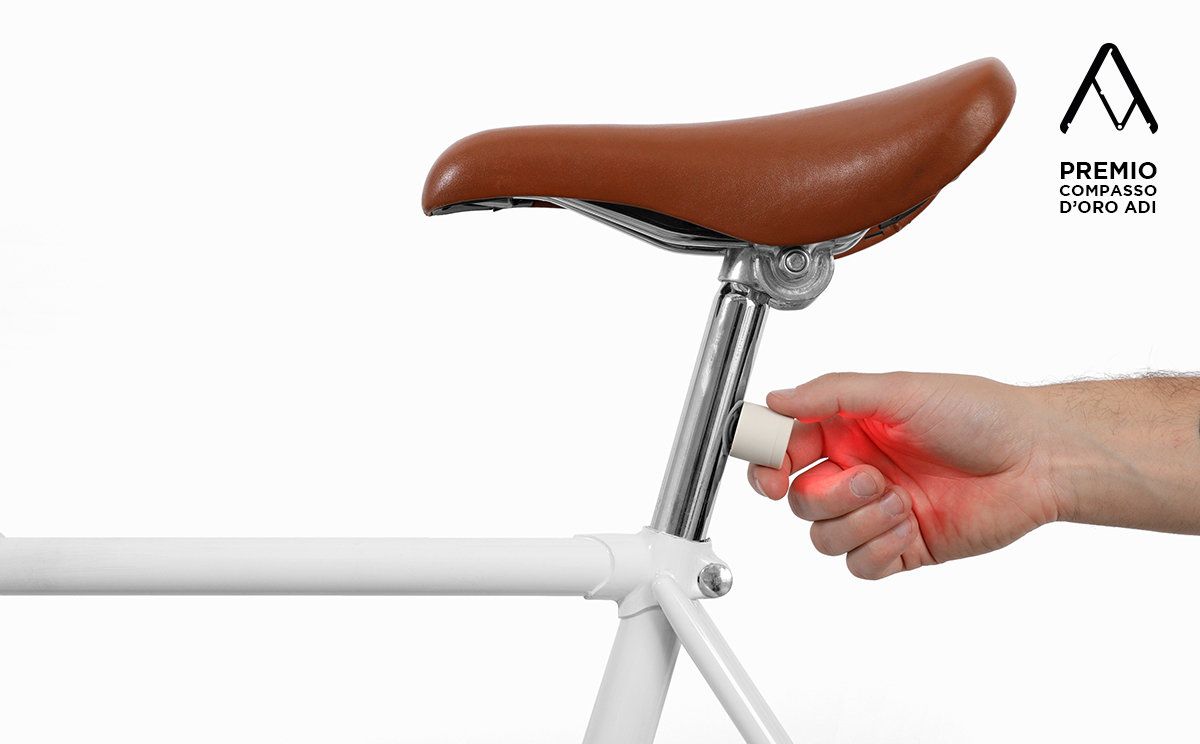 Lucetta是意大利设计师Pizzolorusso的作品,它是一款自行车车灯,一共两只,通过磁性吸在自行车车前和车尾。